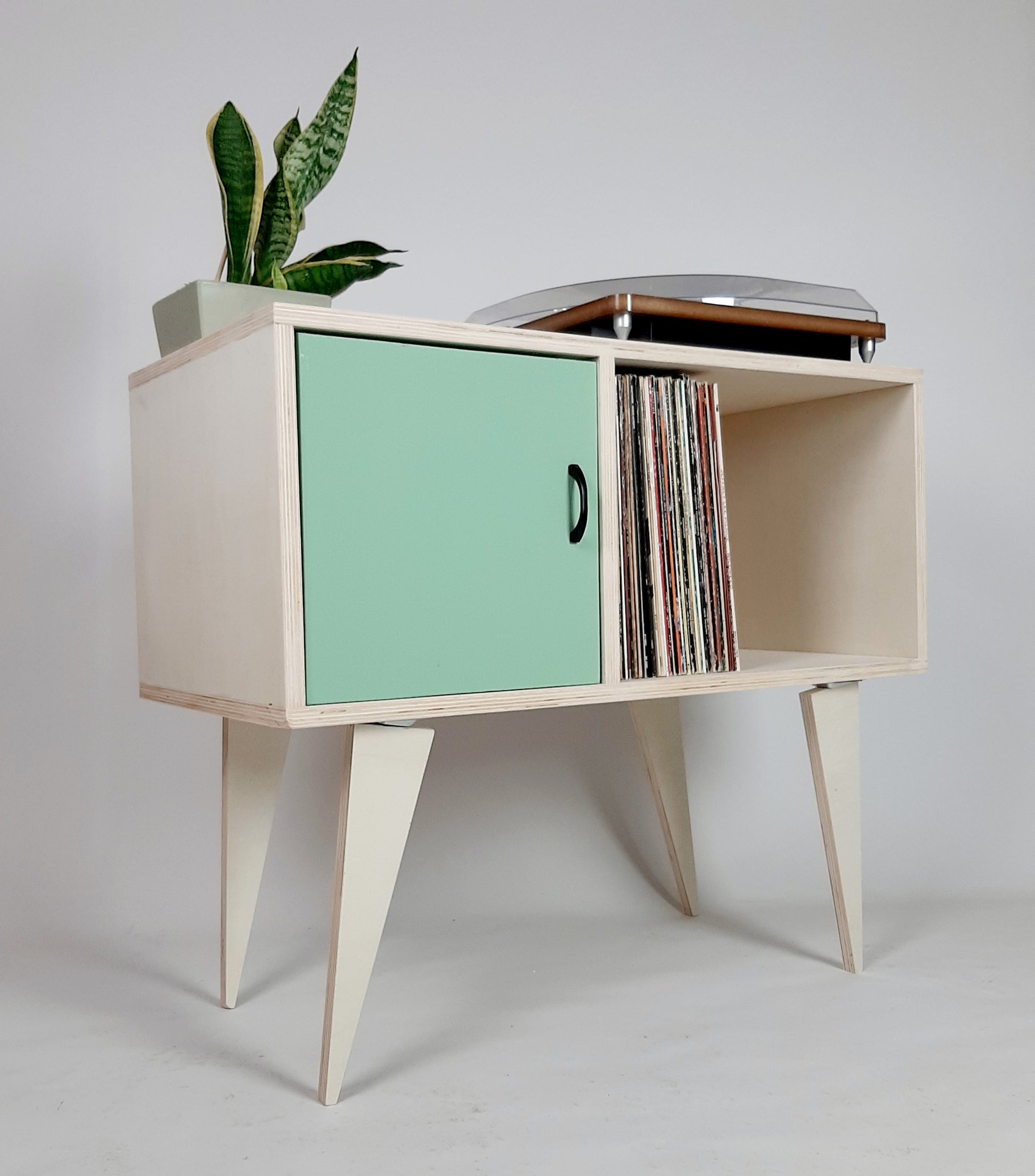 Our stylish, minimalist side board/media table is designed to hold vinyl records but is also perfect as a living room sideboard, media console or even drinks cabinet. With clean lines it is inspired by mid century Danish minimalist furniture but with a unique modern twist. The legs are handmade to a sleek, modern design.