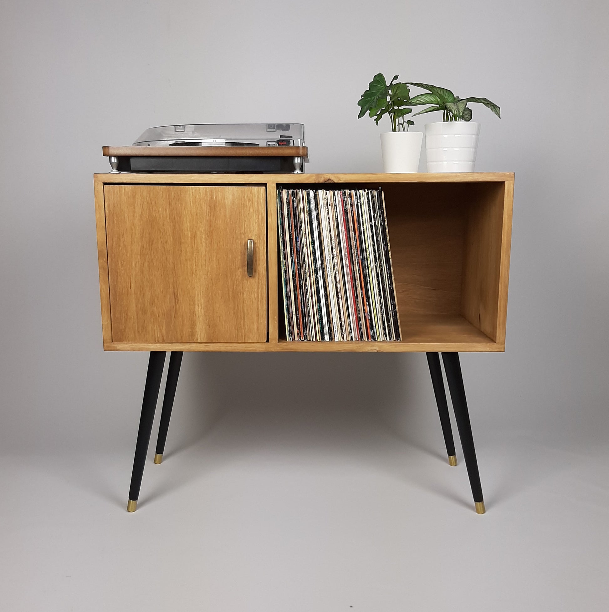 Our stylish, modern side board/media table is designed to hold vinyl records but is also perfect as a living room sideboard, media console or even drinks cabinet. With clean lines it is inspired by mid century Danish minimalist furniture but with a unique modern twist. The legs are handmade dansette legs made here in Santiago by our production partner Firthmade.