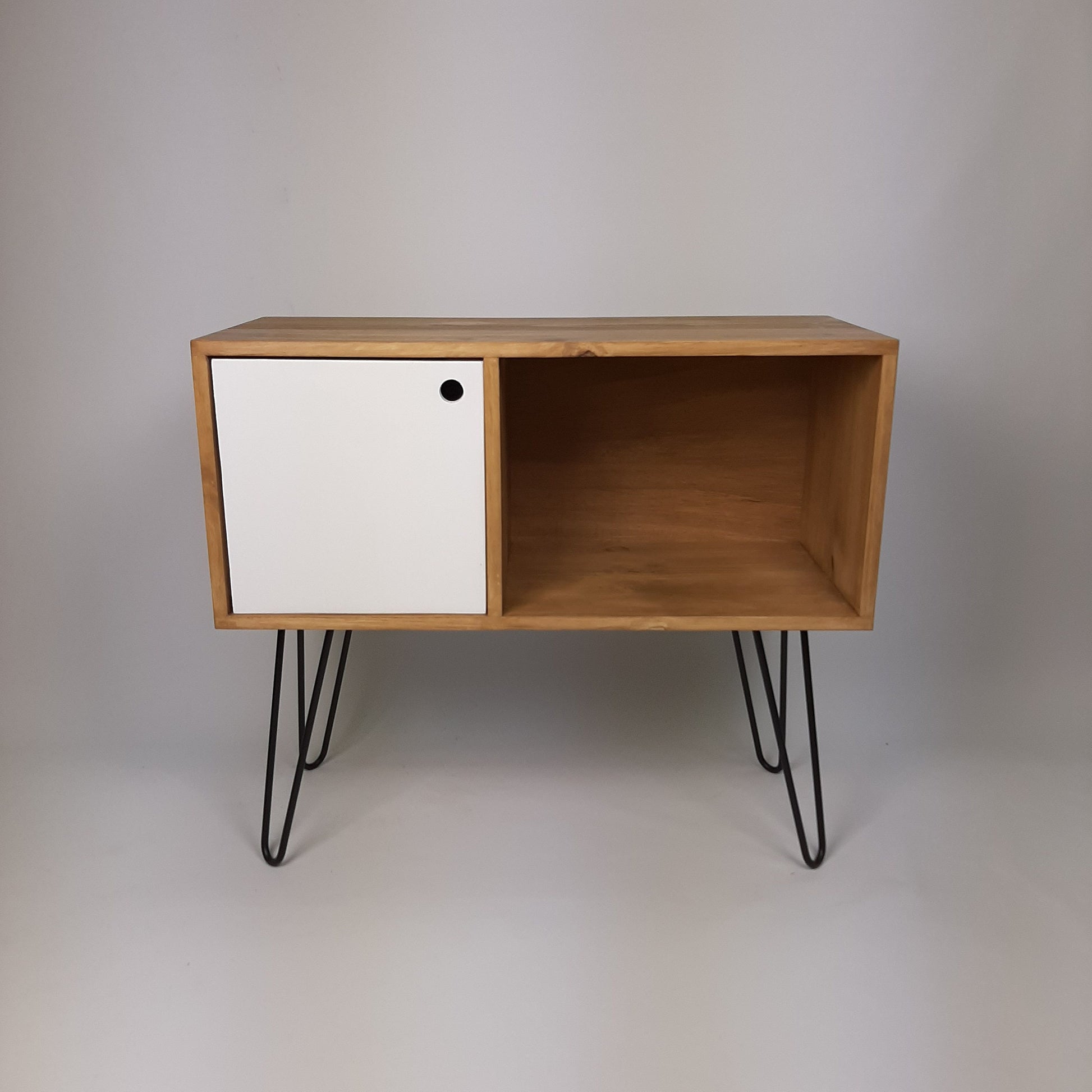Oak Sideboard White Door And Black Hairpin Legs | Classic Vinyl Storage Table | Mid Century Modern | Sideboard | Console Table