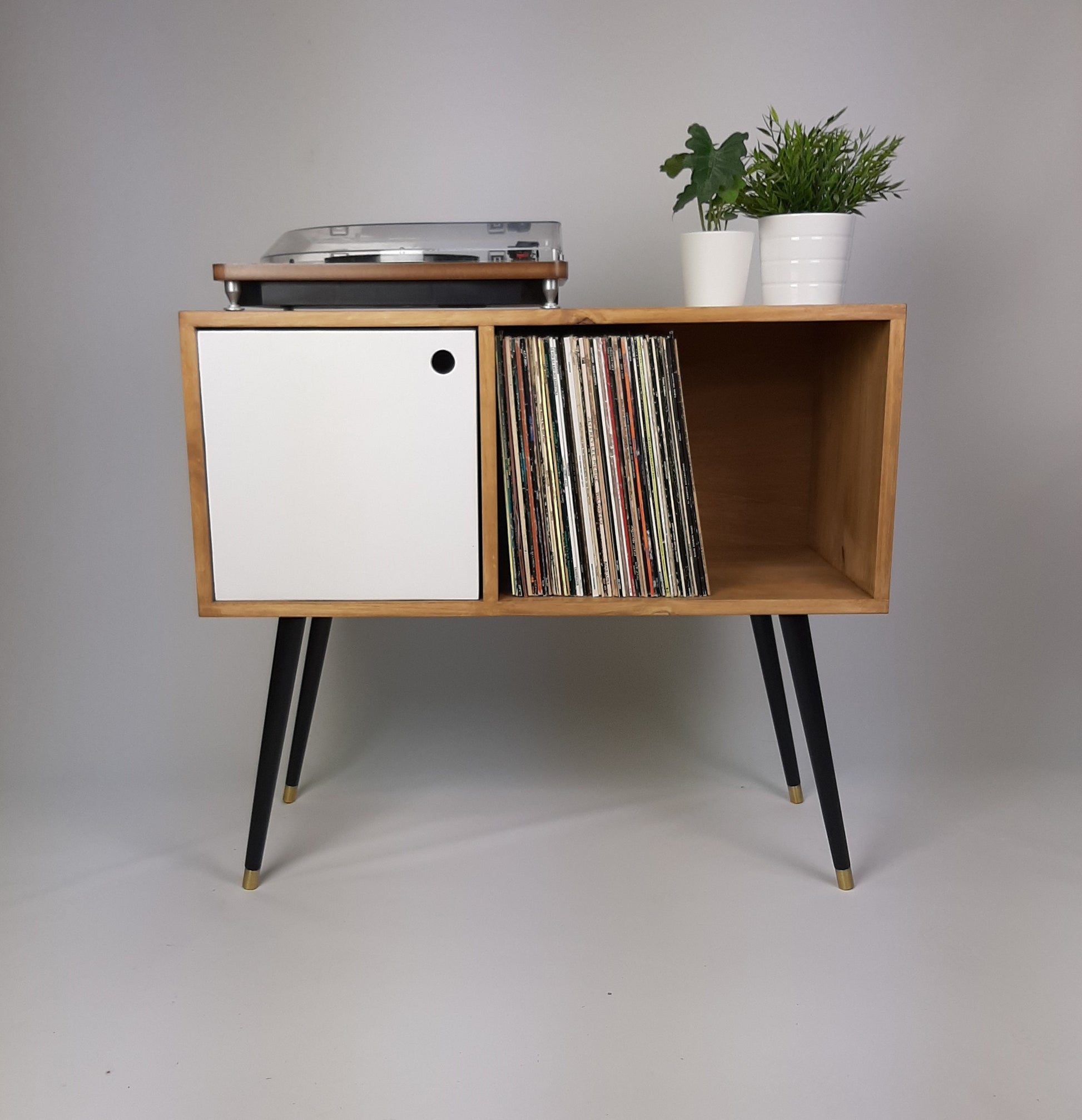 Our stylish, modern side board/media table is designed to hold vinyl records but is also perfect as a living room sideboard, media console or even drinks cabinet. With clean lines it is inspired by mid century Danish minimalist furniture but with a unique modern twist. The legs are handmade dansette legs made here in Santiago by our production partner Firthmade.
